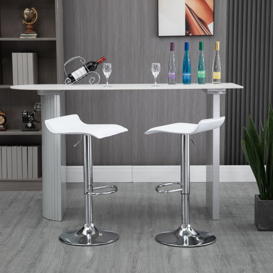 2x Counter Height Faux Leather Upholstered Adjustable Height Swivel Bar Stools -White