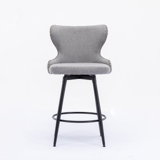 2x Swivel Bar Stools Tufted Counter Chairs with Stud Trim and Metal Base-Light Grey
