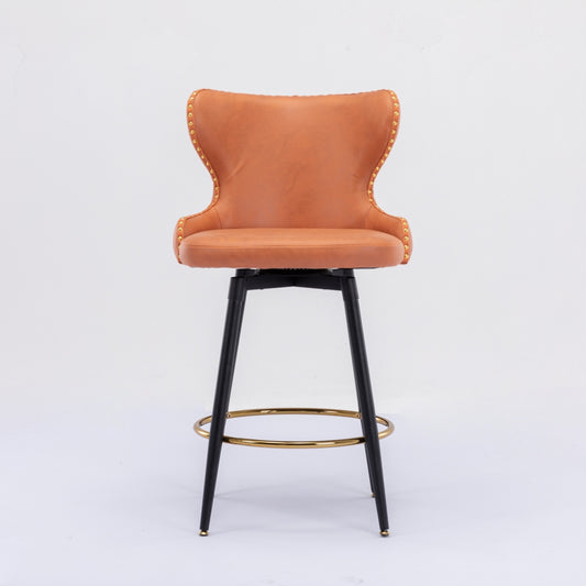 2x Swivel Bar Stools Tufted Counter Chairs with Stud Trim and Metal Base-Orange