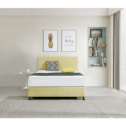 Linen Fabric Double Bed Deluxe Headboard Bedhead - Sulfur Yellow