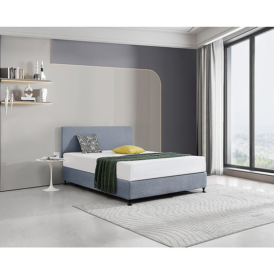 Linen Fabric Queen Bed Deluxe Headboard Bedhead - Berlin Blue