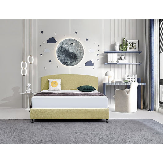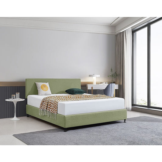 Linen Fabric King Bed Curved Headboard Bedhead - Olive Green