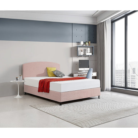 Linen Fabric Queen Bed Curved Headboard Bedhead - Pale Pink