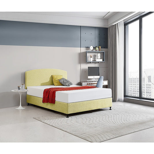 Linen Fabric King Bed Curved Headboard Bedhead - Sulfur Yellow