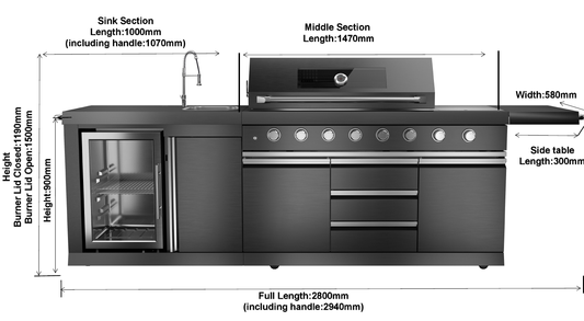Macelleria Professional 6 Burner Outdoor Kitchen BBQ | Black High Grade #304 Stainless Steel