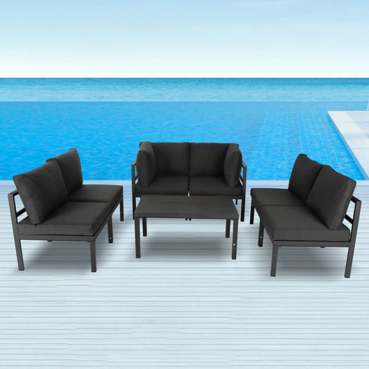 Outdoor Black Minimalist 5 Piece Lounge Set