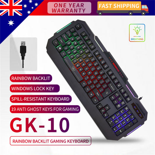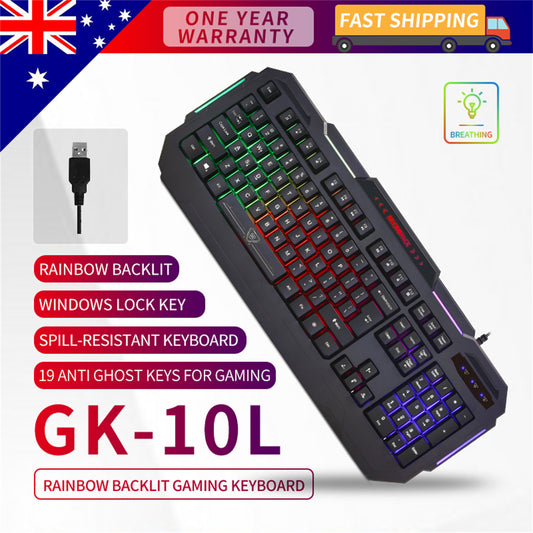 Rainbow Backlit Gaming Keyboard 19 Game Anti Ghosting Keys USB 2.0 Interface AU