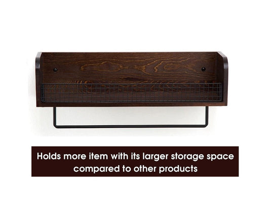 Wall Mount Rustic Wood & Black Metal Bathroom Shelf with Towel Bar