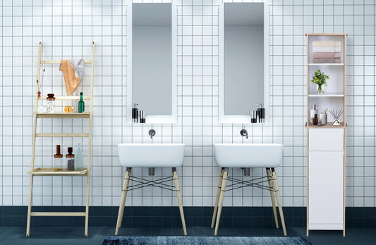 Alto Bathroom Tallboy Narrow High Cabinet With 1 Doors/3 Shelves - Oak/White