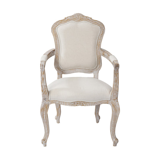 Arm Chair Linen Fabric Beige Oak Wood White Washed Finish