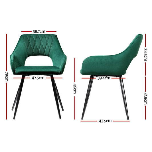 Artiss Set of 2 Caitlee Dining Chairs Kitchen Chairs Velvet Upholstered Green