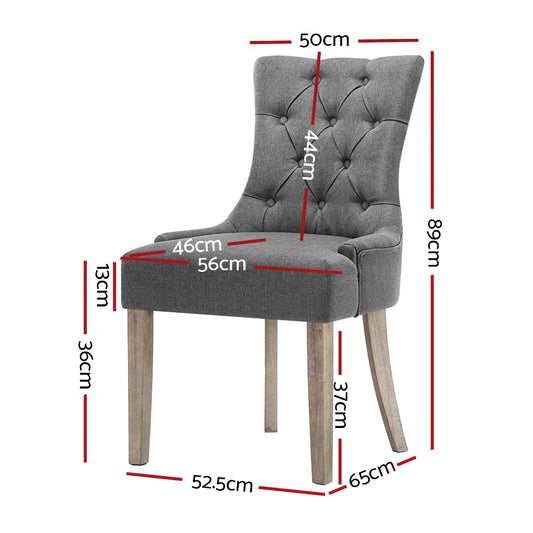 Artiss Set of 2 Dining Chairs French Provincial Kitchen Cafe Fabric Padded High Back Pine Wood Grey