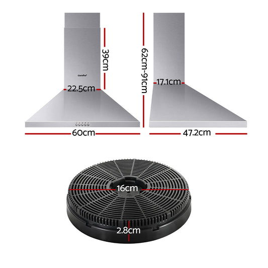 Comfee Rangehood 600mm Stainless Steel Canopy With 2 PCS Filter Replacement Combo