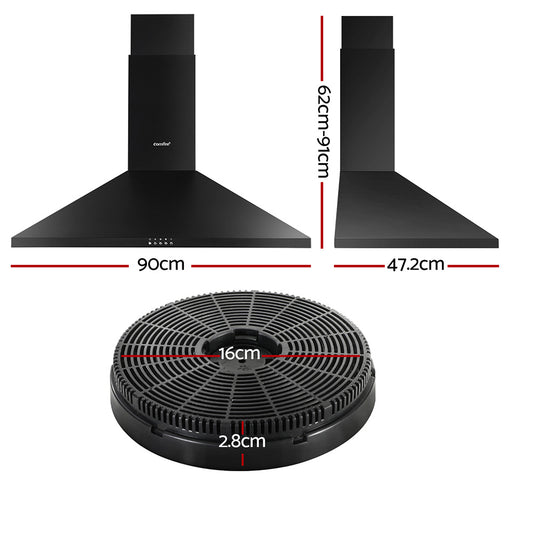 Comfee Rangehood 900mm Range Hood Home Kitchen Wall Mount Canopy 90cm Black