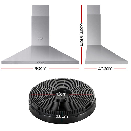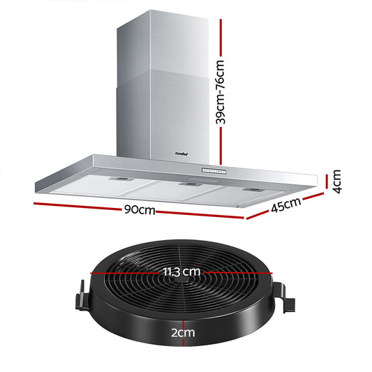 Comfee Rangehood 900mm Home Kitchen Wall Mount Canopy With 2 PCS Filter Replacement