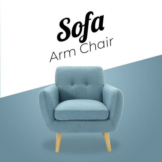 Dane Single Seater Fabric Upholstered Sofa Armchair Lounge Couch - Blue