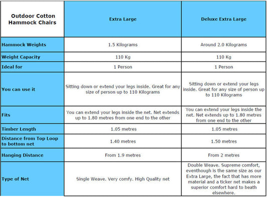 Deluxe Extra Large Mexican Hammock Chair in Outdoor Cotton Colour Blue