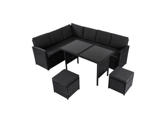 Ella 8-Seater Modular Outdoor Garden Lounge and Dining Set with Table and Stools in Black