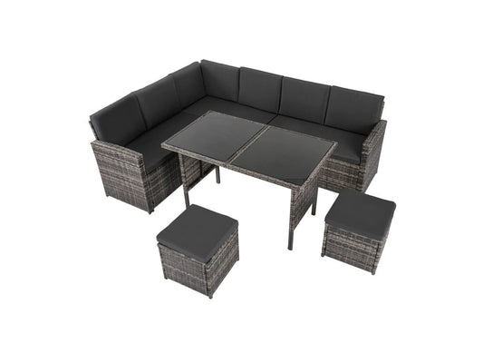 Ella 8-Seater Modular Outdoor Garden Lounge and Dining Set with Table and Stools in Dark Grey Weave