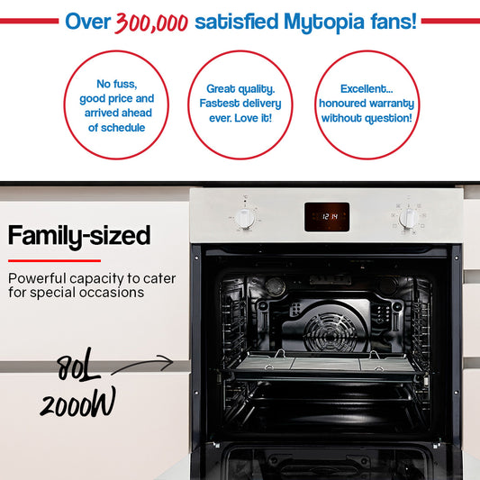 EuroChef 80L Oven Fan Forced Wall Built in Electric Stainless Steel