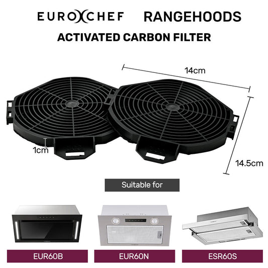 EUROCHEF Rangehood Filter Set, for EUR60B ESR60S EUR60N, 2 Replacement Activated Carbon Filters