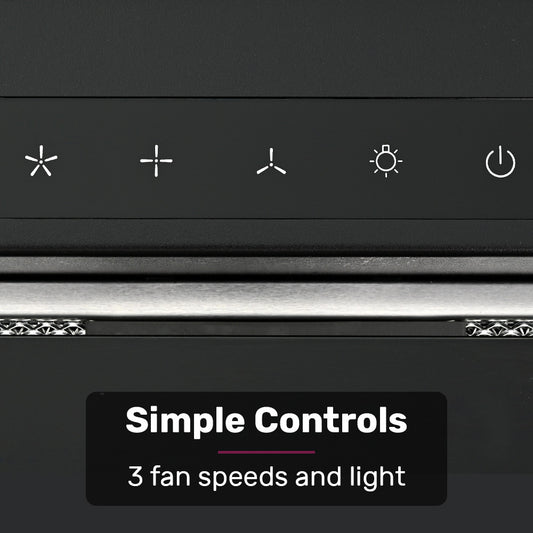 EUROCHEF 60cm Undermount Rangehood Black, Quiet 3-Speed, 3-Layer Dishwashable Filter, LED Lights EUR60B