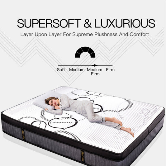 Queen Mattress Latex Pillow Top Pocket Spring Foam Medium Firm Bed
