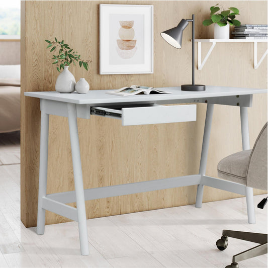 Mindil Office Desk Student Study Table Solid Wooden Timber Frame - White