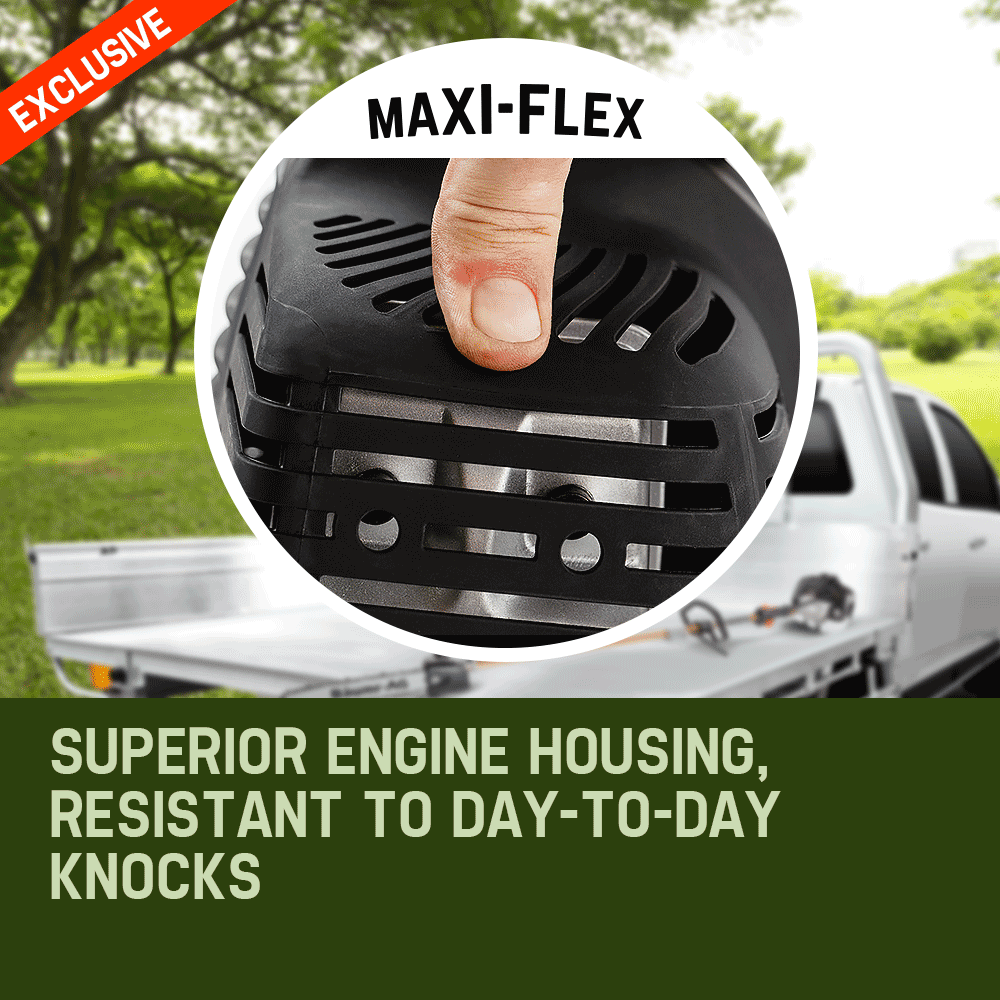 Utilising premium anodized commercial alloy, your Baumr-AG features commercial grade quick connect couplings equipped with dual ball-bearing floating centres. Adjust the extension poles and tackle those hard to reach branches equipped with genuine commercial nine spline fastening ensures maximum stability. Built tough, your Baumr-AG boasts unparalleled levels of quality backed by an extensive 12 month warranty. Buy now and this amazing package comes loaded with a bonus accessory kit, including gloves, earmuffs, mini toolkit and fuel mixer.