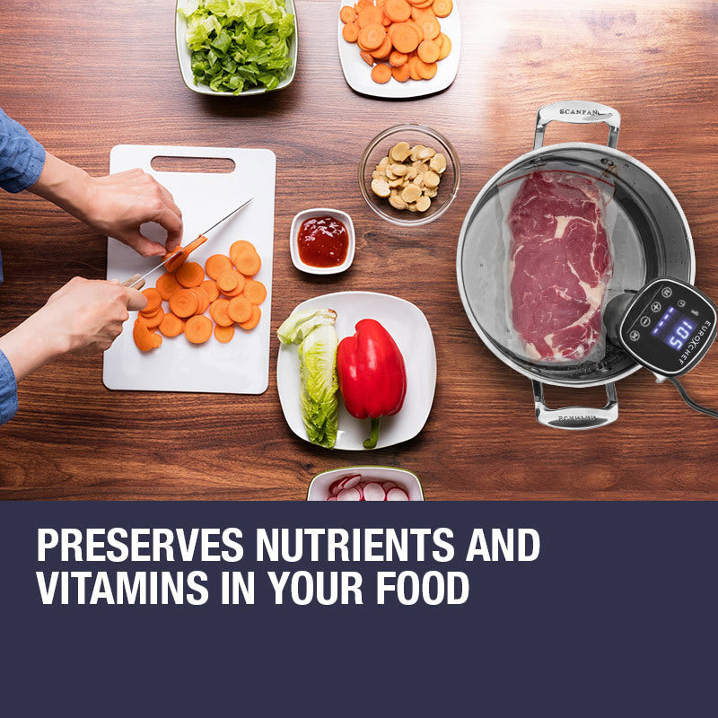 Sous vide is a classic cooking method of professional chefs that is surprisingly simple to do with the right tools for incredible results. A controlled low temperature water bath slow cooks food in a sealed bag through and through while retaining all of its delicious flavor and juices. Pre-set the time and temperature, then simply walk away leaving your food to simmer - it’s that simple. Perfect for busy people who still want to prepare delicious meals at home without being tied to the kitchen.